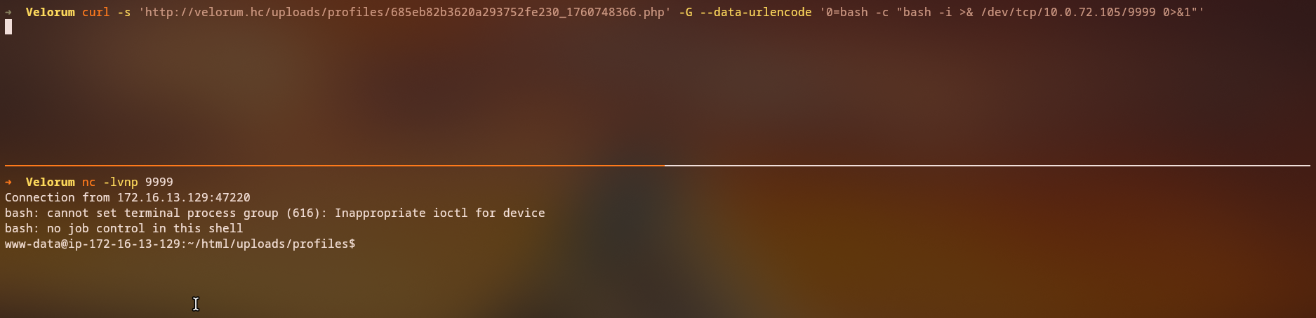 Velorum is a Hard-rated machine that demonstrates a complex multi-stage attack chain involving subdomain enumeration, Git repository analysis, AWS Lambda exploitation, MongoDB manipulation, and binary exploitation. The initial compromise was achieved through subdomain discovery revealing a Git repository with exposed AWS credentials. After gaining access to the AWS Lambda environment, MongoDB database manipulation was used to change admin passwords and gain web application access. A file upload vulnerability allowed for web shell deployment, leading to initial system access. Finally, a SUID binary analysis revealed a command injection vulnerability that enabled privilege escalation to root.