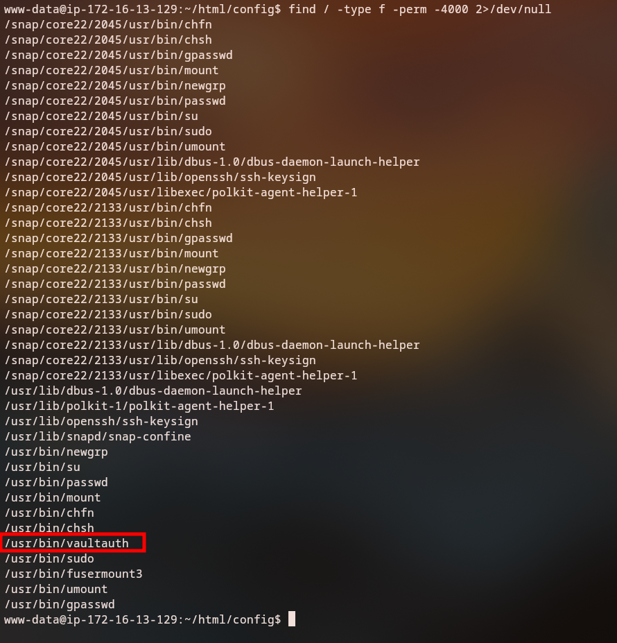 www-data@ip-172-16-13-129:~/html/config$ vaultauth