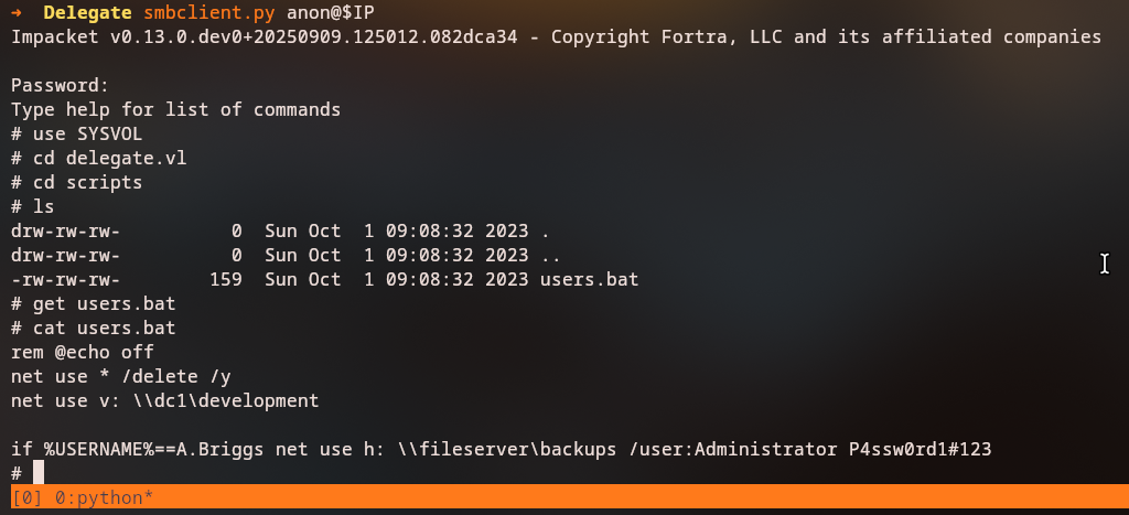 SMB 10.129.30.148 445 DC1 [+] delegate.vl\A.Briggs:P4ssw0rd1#123