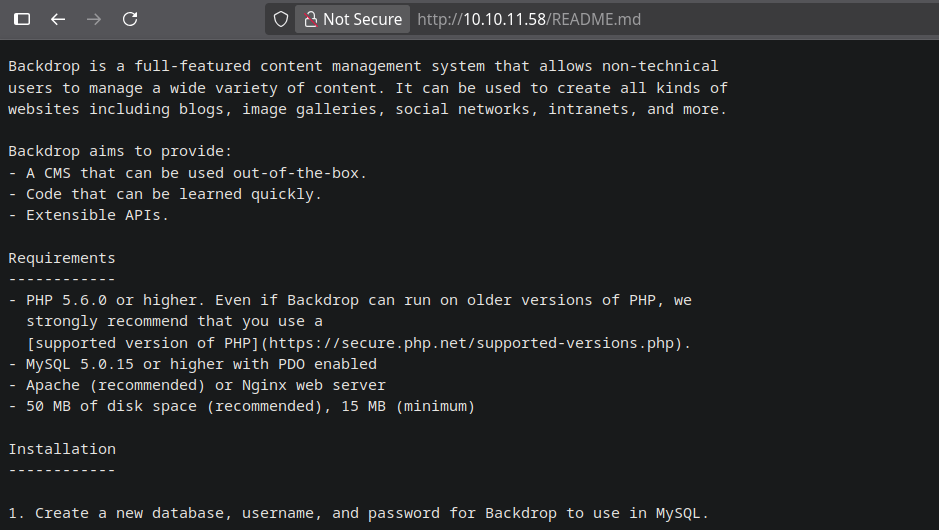 Looking at the bottom of the page, we can see that the web server is running with the Backdrop CMS, which is an open-source content management system (CMS) designed for small to medium-sized websites.