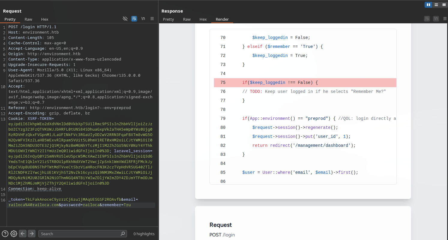 ENVIRONMENT.HTB -> marineSPm@ster!!