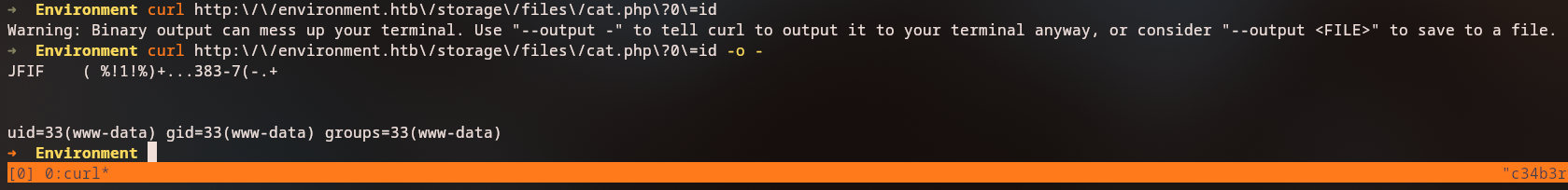 Environment is a Medium Linux machine that demonstrates several interesting attack vectors including Laravel environment manipulation, file upload bypasses, GPG key decryption, and BASH_ENV privilege escalation.