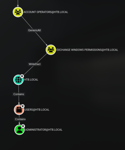 - We have the ability to modify the group “EXCHANGE WINDOWS PERMISSIONS” which is a group that has WriteDacl rights over the domain.