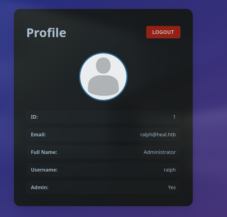curl 'http://api.heal.htb/download' -H 'Authorization: Bearer eyJhbGciOiJIUzI1NiJ9.eyJ1c2VyX2lkIjoyfQ.73dLFyR_K1A7yY9uDP6xu7H1p_c7DlFQEoN1g-LFFMQ'