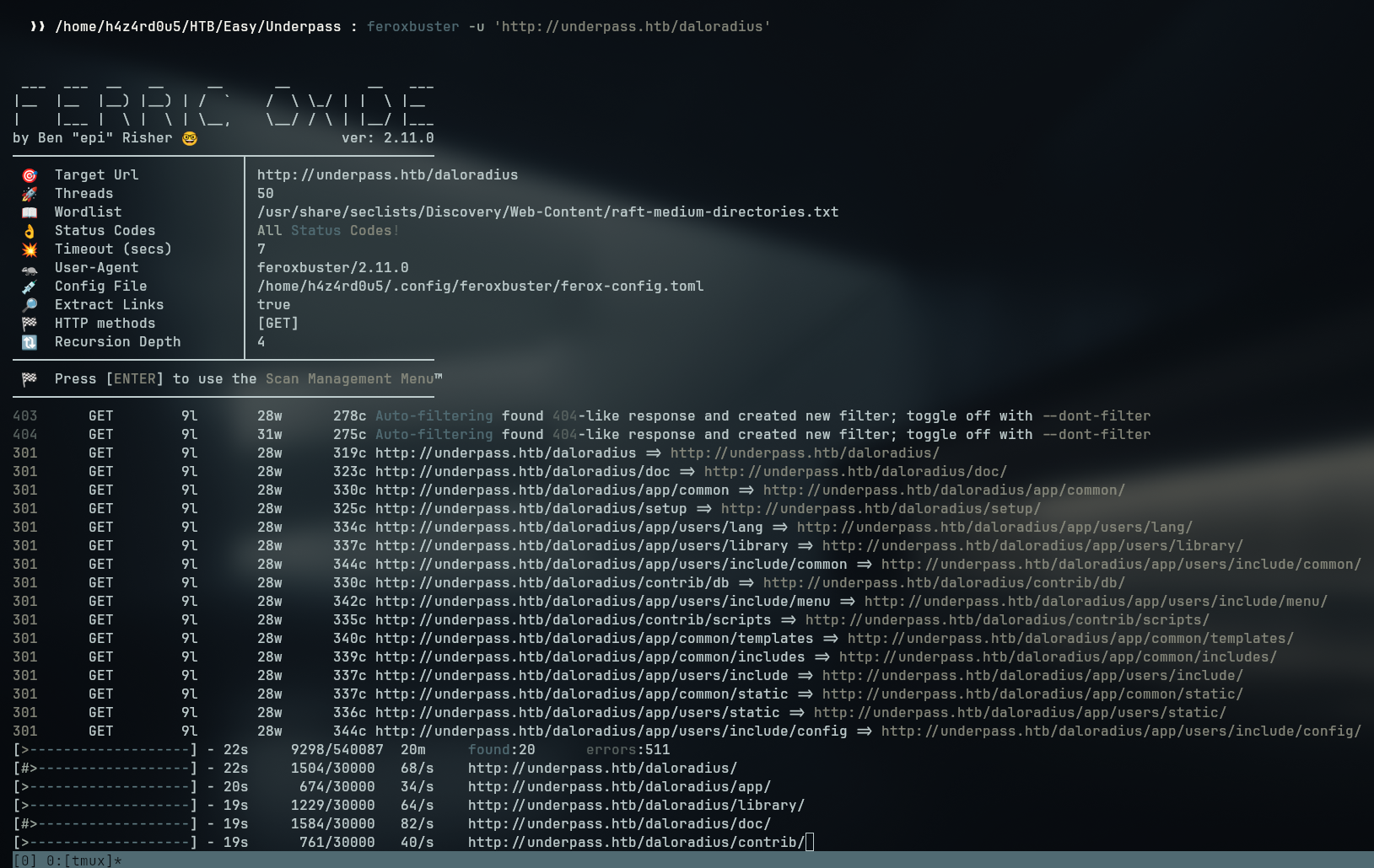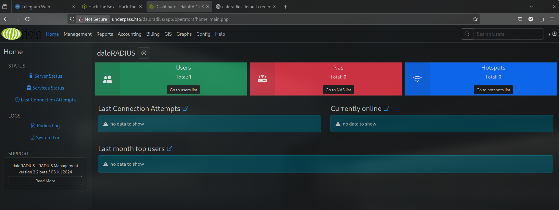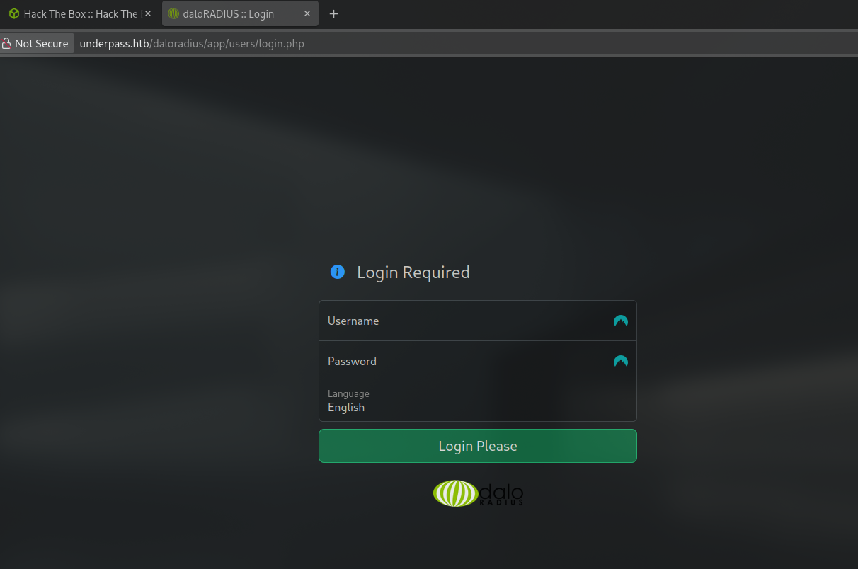 From the output of the snmpbulkwalk, we can infer that there is a daloradius server running and a possible username steve@underpass.htb.